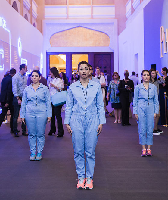 This work explores how the body, insignificant gestures and absurd repetitive movements can trigger narratives. Drawing on her interests in narratives and disastrous scenarios, Kaoud looked at potential emergency provisions designed for the site of the fair, Madinat Jumeirah, which could cause visitors to question their safety and secure spaces. By examining the safety manuals and precautionary materials that anticipate visitors’ behavior, Kaoud developed a work that challenges our notions of security in a public venue. This performance triggers narratives that speculate on one’s individual perceptions of a safe space and safety measures.
