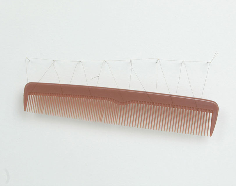 Once disconnected from the human body, a hair in a singular format becomes isolated in a state that is simultaneously neither fully being nor object, causing it to not be treated as a real entity. Although its sense of belonging to a human body decreases its aspect of approachability, its natural acquiring of independence from the body brings it closer to the state of an object withholding itself in space, thus heightening this element’s shape, durability and social value. My interest became invested in regaining this element its value through science, collection, geometry and durability. Scientifically a lock of hair can withstand 12 tons of weight, its diameter varies from 17 to 120 micrometers, its natural character is dictated by the shape of the follicle pushing it outward into the world, retaining inertia after its disconnection from the human body causing it to react to the weather as per normal and most importantly its loss of all that social character when detached from the belonging body. Hair collection is an exercise allowing me to re-establish the value of hair as an object via multiplicity, thus gaining it a power of presence and naturally reclaiming its space as a being that exists in our everyday. By applying geometry to this organic material and presenting it as a sculpture, photocopying it endlessly covering a huge wall of it and silkscreening life-size bodies of hair are attempts to point at how this element is equal in value to other objects but its human value makes it capable of overtaking our space. Via science I am testing its resistance to weather conditions and being shaped geometrically, also its incredible strength against industrial materials such as brick stones. The interesting element is the failure of this element to be fully object, it remains connected to its social factor even as a dead cell. Its residual quality forcefully establishes its belonging to a human body rooting one in an origin and a set of rituals applied to hair. I attempt to make this element something, but also acknowledge in the work its treatment as nothing.