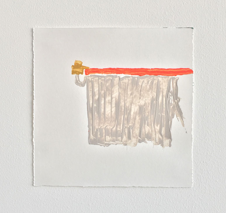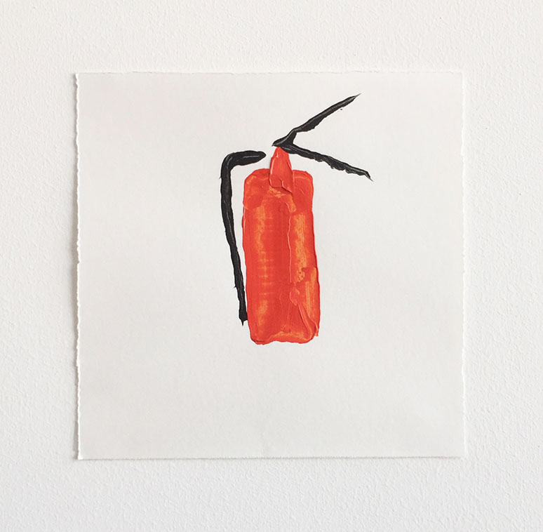 On Paper 2017 are small scale palette knife paintings on paper of emergency provisions. These pieces articulate the distance between anxiety and preparedness for an unknown situation. Anxiety is internal, produced from an unknown or a source of threat not present in an immediate situation. On Paper is placing anxiety on paper via small scale palette knife markings in order to apply focus, precision and distraction for a few moments from the escalation of anxiousness.
